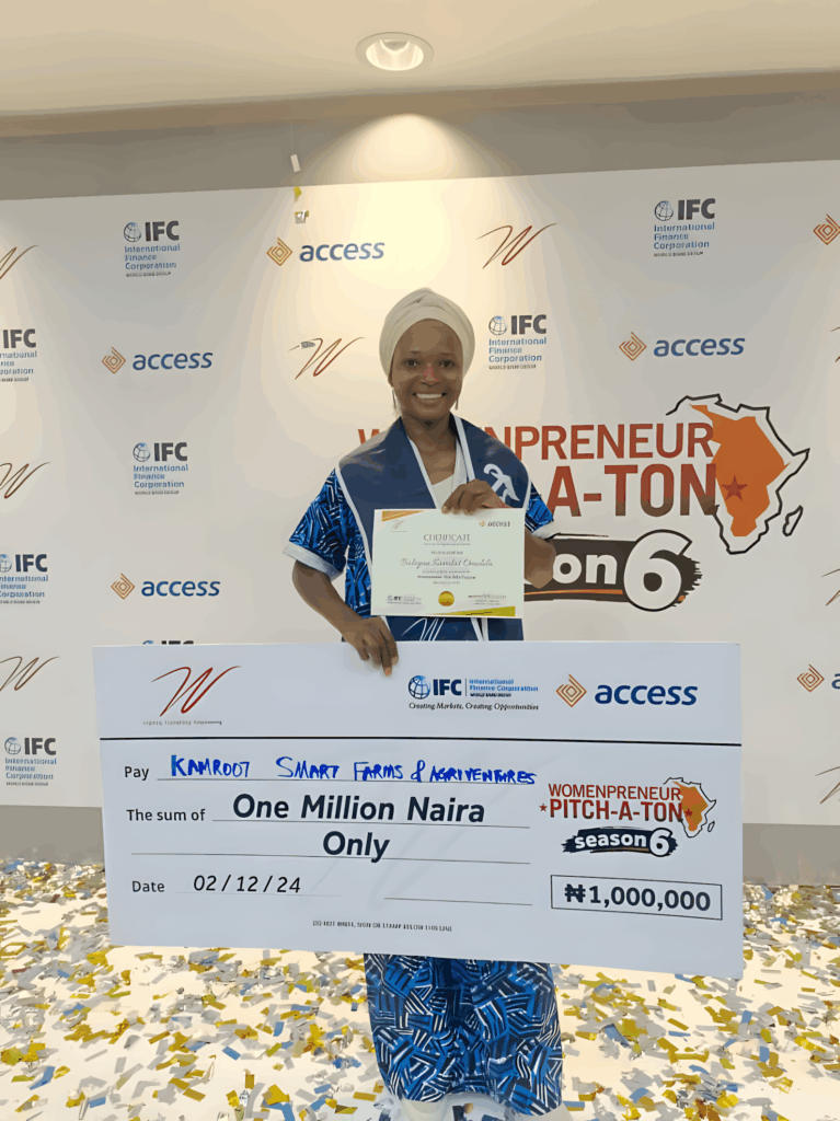 This new mindset spurred her to reach even higher. In 2024, she entered the Access Bank Womepreneur Pitch-a-ton competition and emerged a winner, securing a prize of ₦1,000,000 (approx. $651). With this capital, Kamilat expanded her operations, diversified her produce, and set her sights on scaling her agribusiness in 2025.