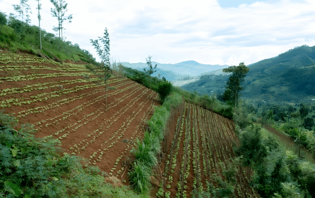 A major constraint Burundian farmers face is the nature of their soil: it generally has low water retention capacity, is predominantly acidic, and is relatively poor in organic carbon and major nutrients. Most of the territory in the Soil Fertility Stewardship Project (PAGRIS) intervention area is sloped and suffers from soil loss, which is exacerbated by increased exploitation of the soil by farmers using poor agricultural practices.