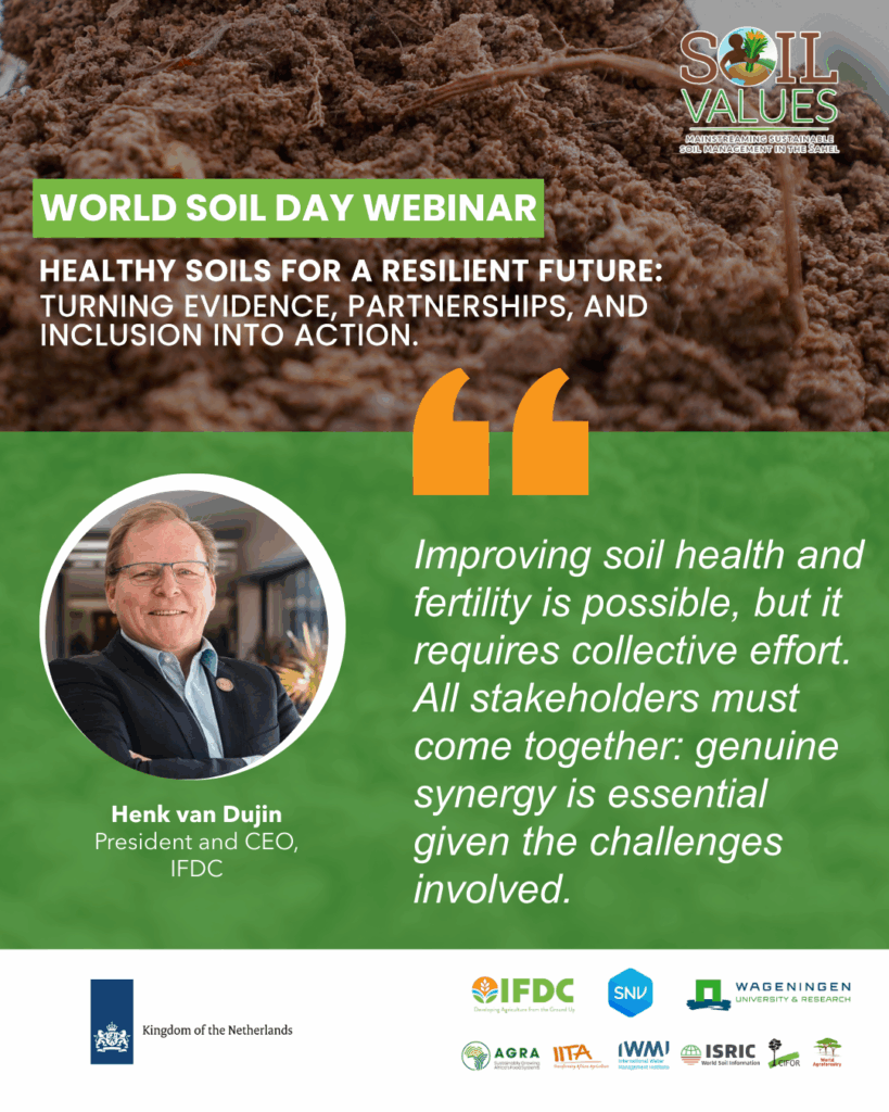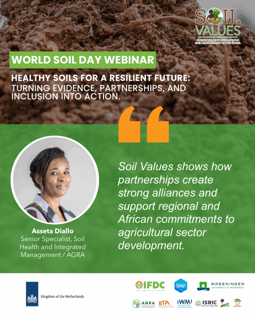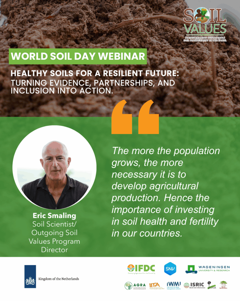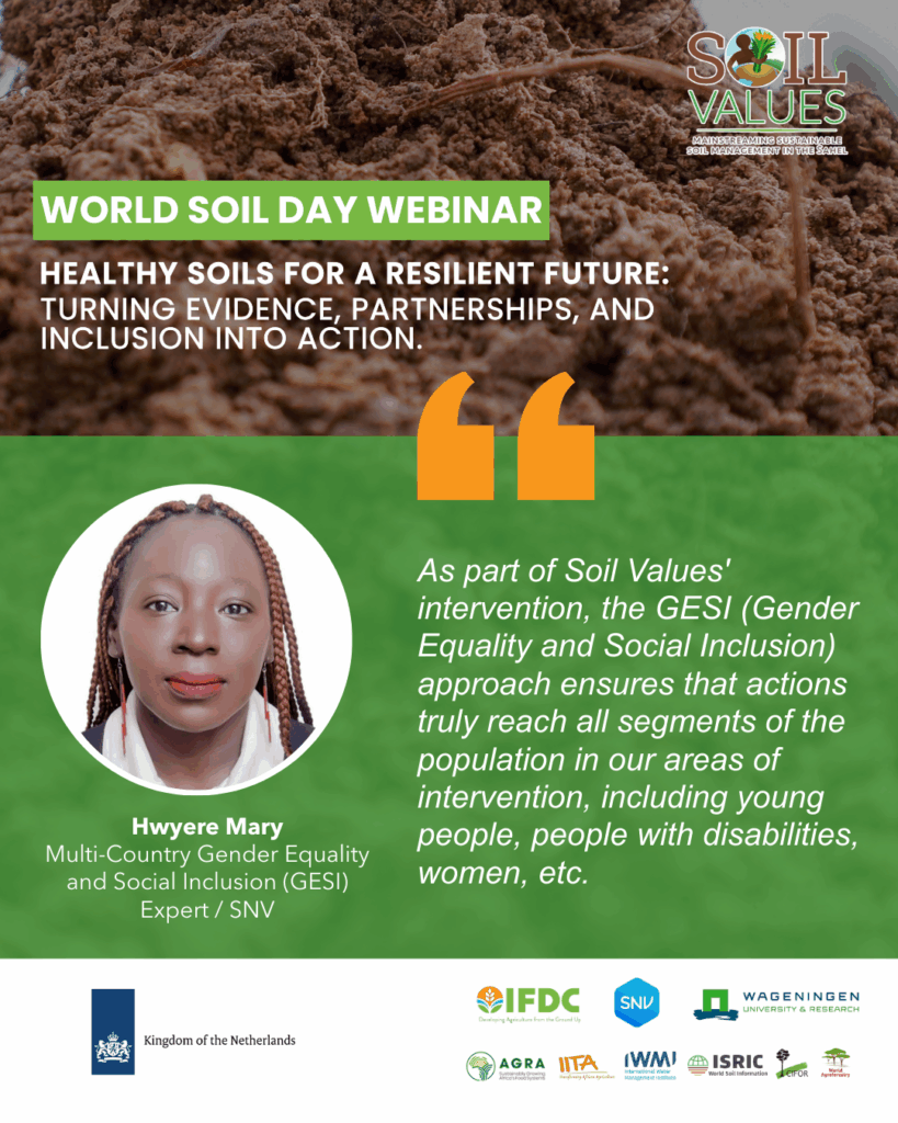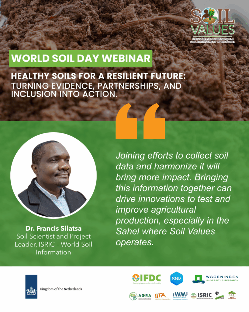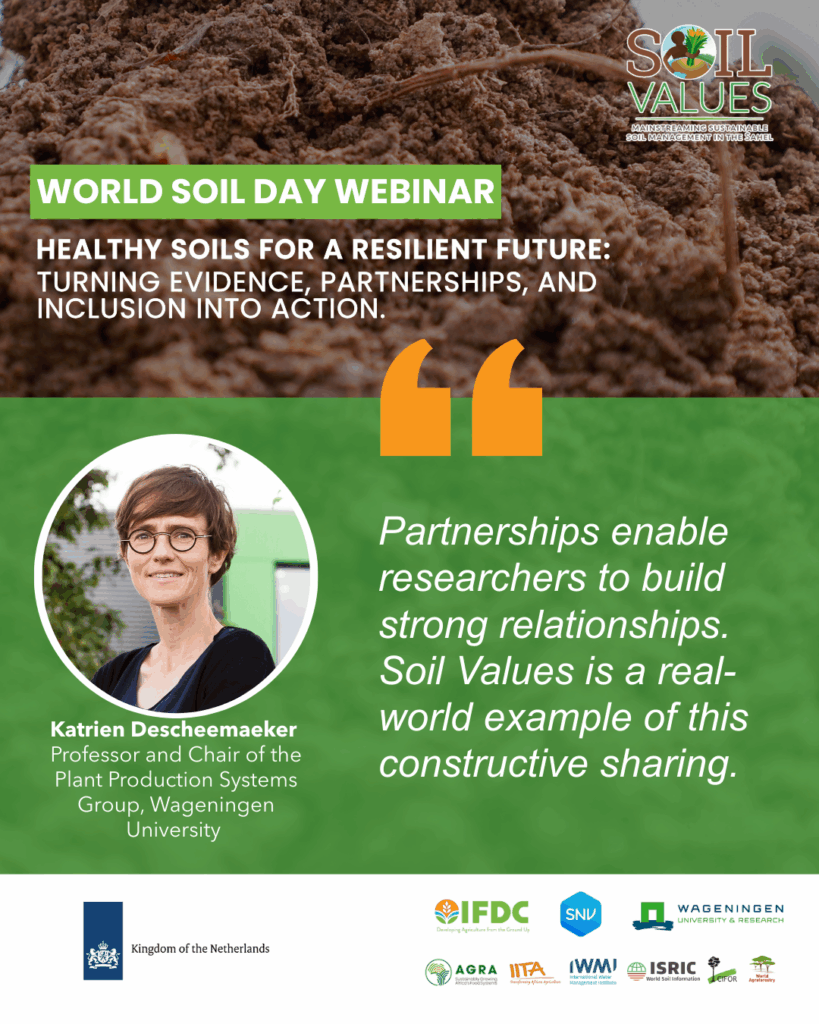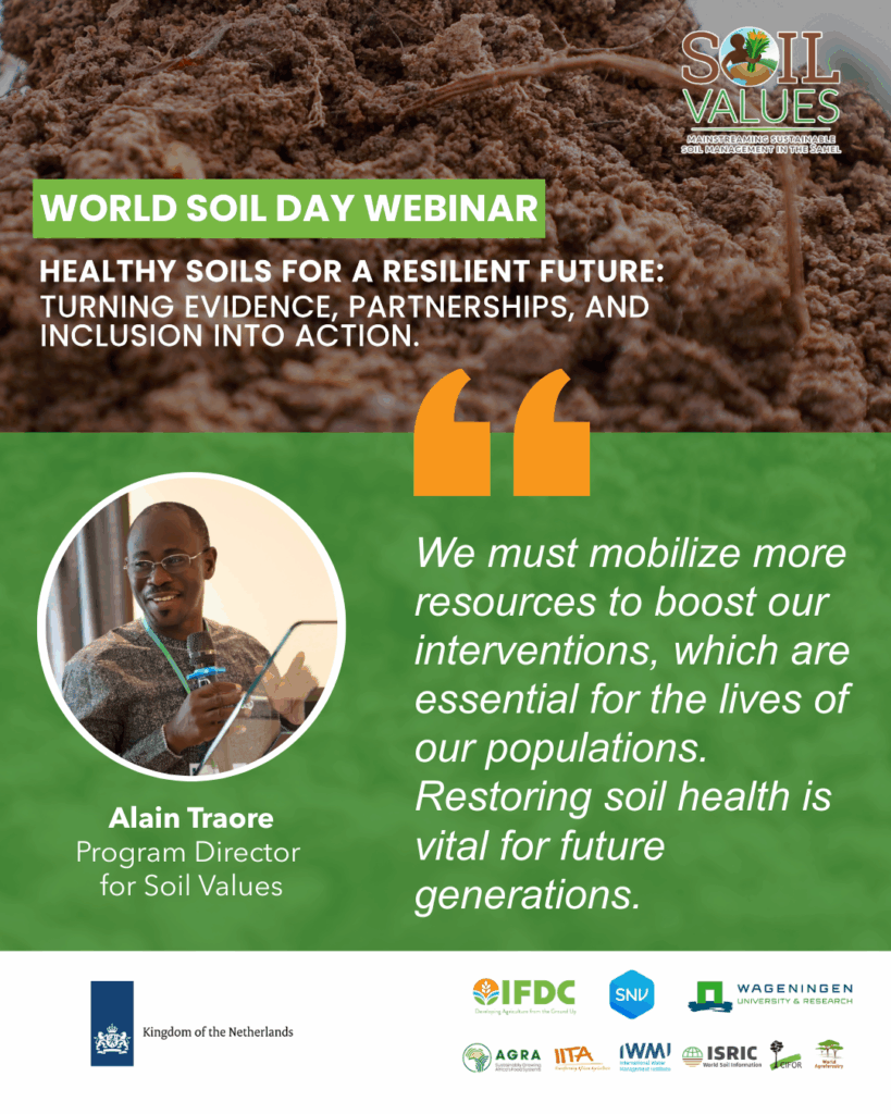 This year’s World Soil Day webinar, hosted by the Soil Values Program, brought together experts, practitioners, and partners from across the Sahel and beyond. Together, we explored the urgent need to restore degraded soils, strengthen sustainable farming practices, and build more resilient food systems for communities across the region.
